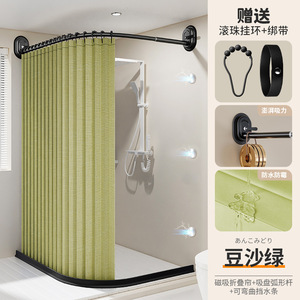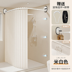 吸盘款:米色【弧形杆+帘+挡水条+双侧磁吸】