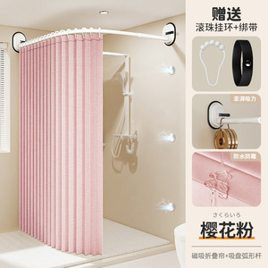 吸盘款:粉色【杆+帘+双侧磁吸】