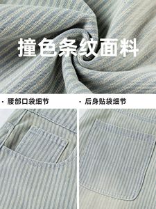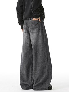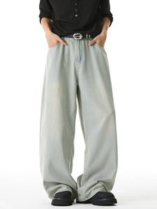 复古竖条纹水洗牛仔裤男秋季款美式潮牌休闲直筒裤廓形宽松长裤子