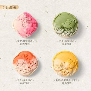 (4个混装)【玉壶(黄)+香炉+玉壶(绿)+玉兰】流心月饼丨独立包装