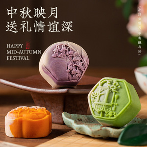 中秋节散装月饼批发团购手工渐变流心中式糕点独立装送礼零食甜点