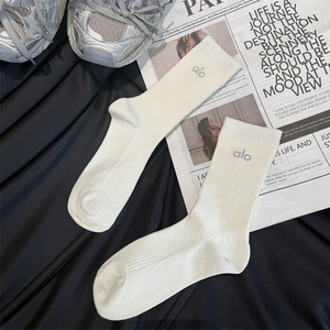 抖音爆款alo欧货字母袜子女百搭潮流堆堆袜运动健身跑步长筒棉袜