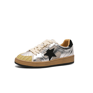 韩版真皮星星小白鞋女2025秋新款复古做旧小脏鞋百搭休闲运动板鞋