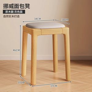 实木凳子家用可叠放软包板凳客厅木头矮凳简约现代小方凳餐桌椅子