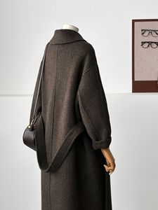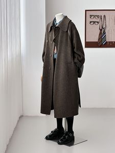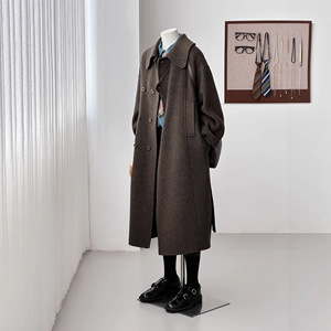 【可可栗棕】25秋大衣女立领长款系带毛呢宽松外套HL141简约羊毛