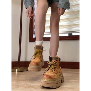 厚底内增高马丁靴女英伦风2025新款夏天薄款透气大黄靴