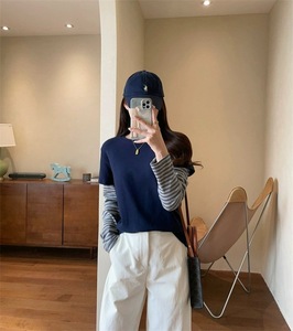 俏皮减龄假两件条纹长袖拼接棉感软糯磨毛圆领T恤女2025秋打底衫