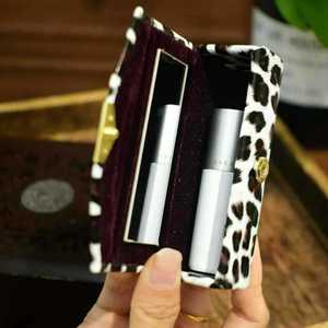 唇膏便携式豹纹带镜子迷你首饰口红保护收纳盒