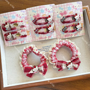 新款优雅可爱卡通红色猫咪bb夹甜美少女心马尾皮筋发绳百搭发饰