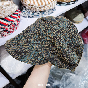 批发韩国2025年早秋新款小众格纹褶皱报童帽女大头围显脸小画家帽