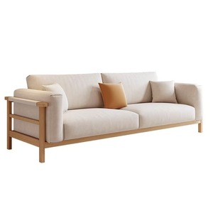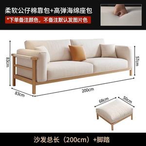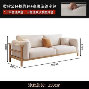 日式原木风猫抓布艺沙发小户型出租房北欧实木三人位家用直排沙发