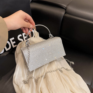 2025新款跨境外贸手拿包斜跨晚宴包水钻包银色包包名媛晚装包满钻