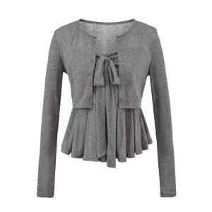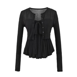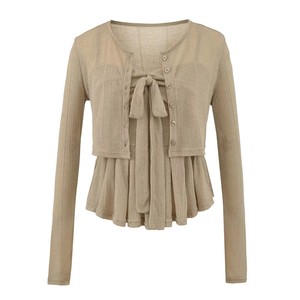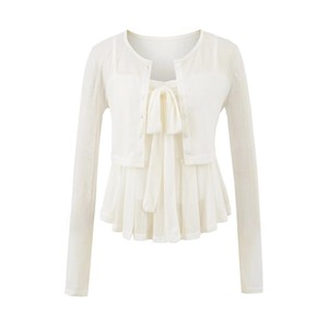 甜心少女气质纯色蝴蝶结修身纯欲吊带T恤+长袖开衫两件套装上衣女
