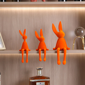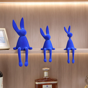 克莱因蓝卡通植绒坐姿网红兔子摆件现代客厅电视柜酒柜家居装饰品