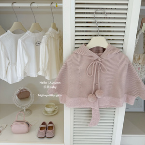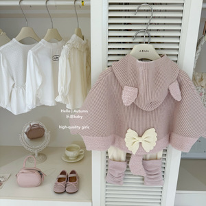 【乐恩童装】原创设计秋冬女童粉色卡通连帽斗篷百搭打底裤两件套