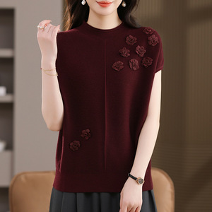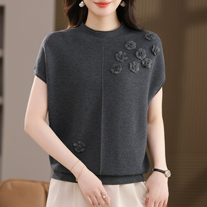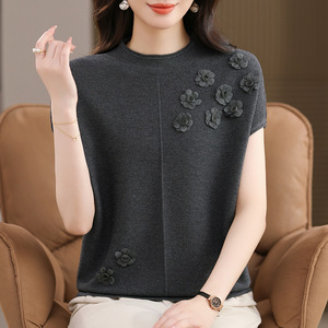 2025夏秋中年妈妈夏装时尚洋气上衣50岁中老年女短袖针织衫毛衣女