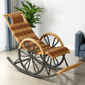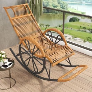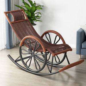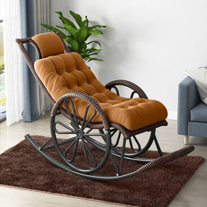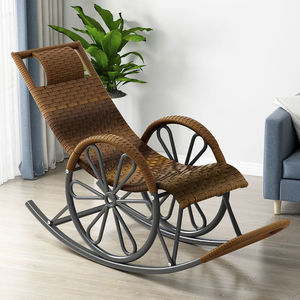 外贸秋冬摇椅加坐垫家用仿藤编老人逍遥椅跨境午睡可躺创意摇摇椅