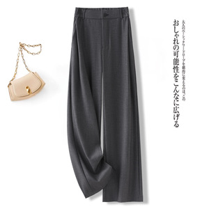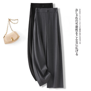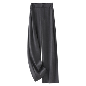 天丝羊毛灰色高腰窄版阔腿裤女2025新款宽松显瘦高级感垂感休闲裤