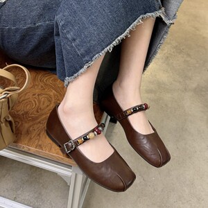 浅口方头单鞋女秋季新款一字扣带平底时尚百搭玛丽珍鞋XHR06-30