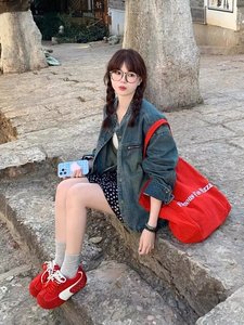 港风复古时尚做旧牛仔外套女2025春秋季新款宽松显瘦休闲通勤上衣