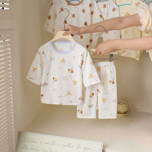 儿童夏季莱赛尔棉七分空调服套装亲子装睡衣无骨家居服