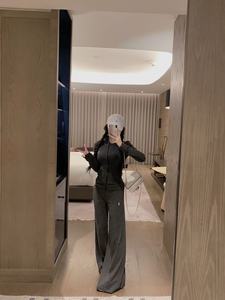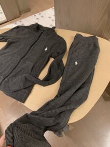 25SS高版本上新拉夫RL小马刺绣拉链开衫长裤条纹经典灰色显瘦套装