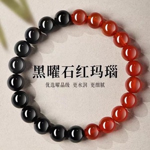 天然高端乌金黑曜石红玛瑙手串真品男女款转运招财手链手串散批发