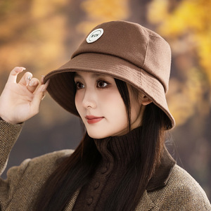 秋冬复古加厚磨毛渔夫帽户外防风显脸小盆帽百搭英伦风保暖帽子女