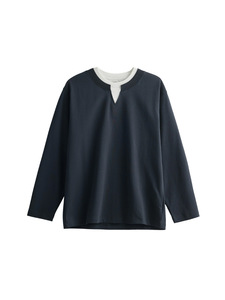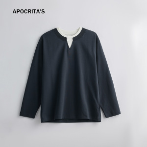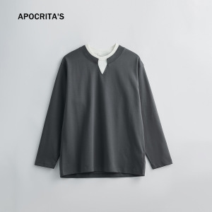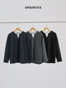 APO男装 |跨境男士长袖T恤秋季轻奢高级感宽松假两件休闲内搭上衣