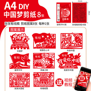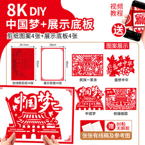 热爱祖国剪纸【12张A4】 中国梦剪纸【8张A4】 百年征程剪纸【12张A4】 爱国拥军剪纸【8张A
