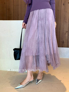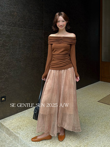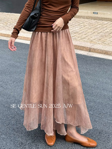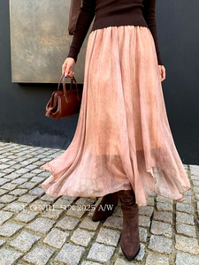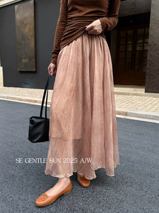 秀熙熙2025秋季新款白标气质百褶高腰半身裙法式大摆长裙女85261