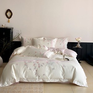 少女心全棉100支长绒棉四件套唯美花卉刺绣纯棉清新被套床上用品