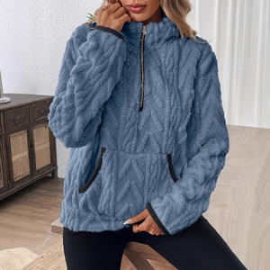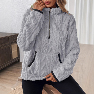 现货亚马逊 wish跨境货源2025秋冬时尚短款撞色半开领毛绒女卫衣