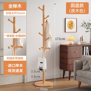 新中式实木衣架落地立式卧室玄关衣帽架挂衣架榉木挂包架立体衣架
