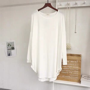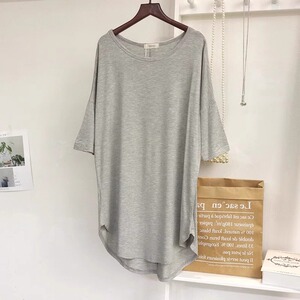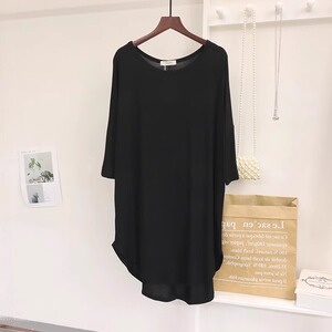 广州十三行女装!莫代尔短袖T恤女洋气宽松中长款配鲨鱼裤的上衣