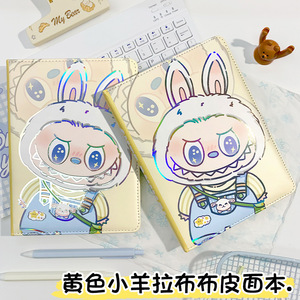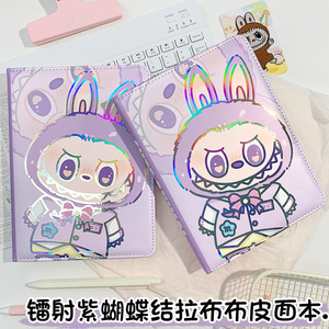 新款a5镭射紫蝴蝶结拉布布笔记本高颜值pu潮玩横线本拉布布彩页本