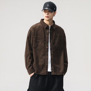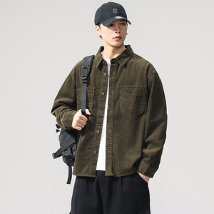 2025春季新款长袖衬衫男港风日系休闲宽衬衣男士衬衫外套潮牌工装