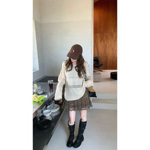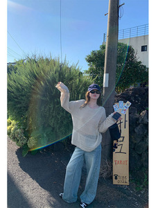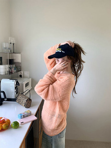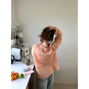 2025秋季新款 闲暇周末~马海毛镂空提花圆领宽松慵懒针织罩衫