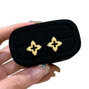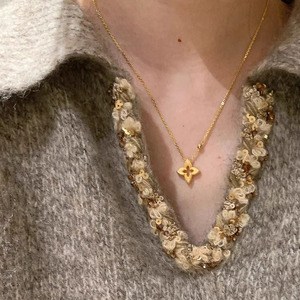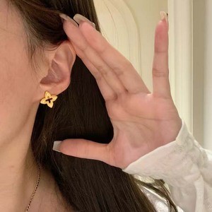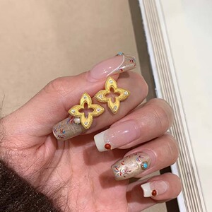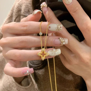 中古风vintage拉丝四叶草耳钉女 沙金高级感轻奢复古宫廷风项链