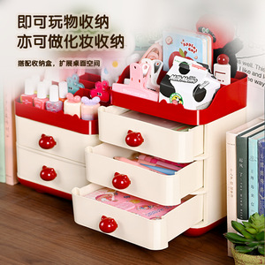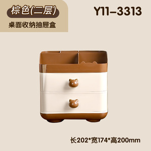 桌面收纳盒双层小抽屉化妆品置物架阶梯分格办公书桌文具整理笔筒