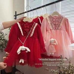 女童连衣裙两件套秋冬季2025新款洋气宝宝周岁礼服保暖加绒公主裙