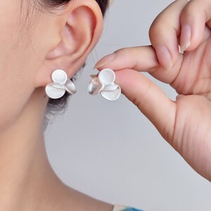 新款韩版时尚简约气质百搭立体拉丝磨砂花瓣耳勾清新时尚耳饰品