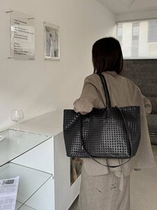 网红编织大包欧美时尚大容量手提托特包镂空质感通勤腋下包