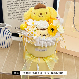 玩偶香皂半身布丁狗花束+礼袋+灯串+贺卡