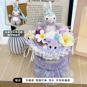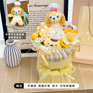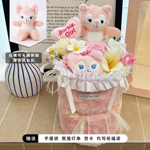 玩偶香皂半身琳娜贝儿花束+礼袋+灯串+贺卡