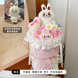 可拆卸式玩偶香皂拉布布花束+钥匙扣+礼袋+灯串+贺卡