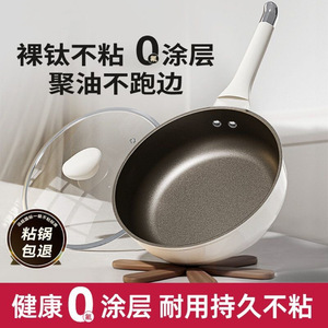 有钛无涂层平底锅不粘锅家用牛排煎锅炒菜炒锅电磁炉燃气灶通用