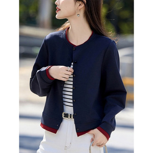 时髦感撞色拼色假两件外套2025年春新时尚圆领休闲复古棒球服外套