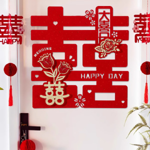 喜字贴结婚礼专用婚房布置装饰大门入户门房门卧室门立体贴纸套装