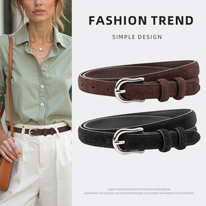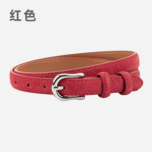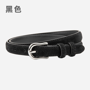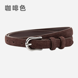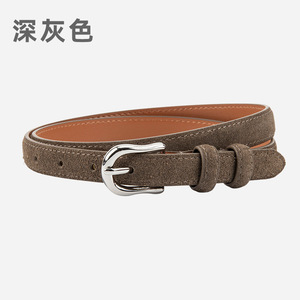 简约设计感绒面磨砂真皮腰带女士配连衣裙牛仔裤带装饰银扣皮带女